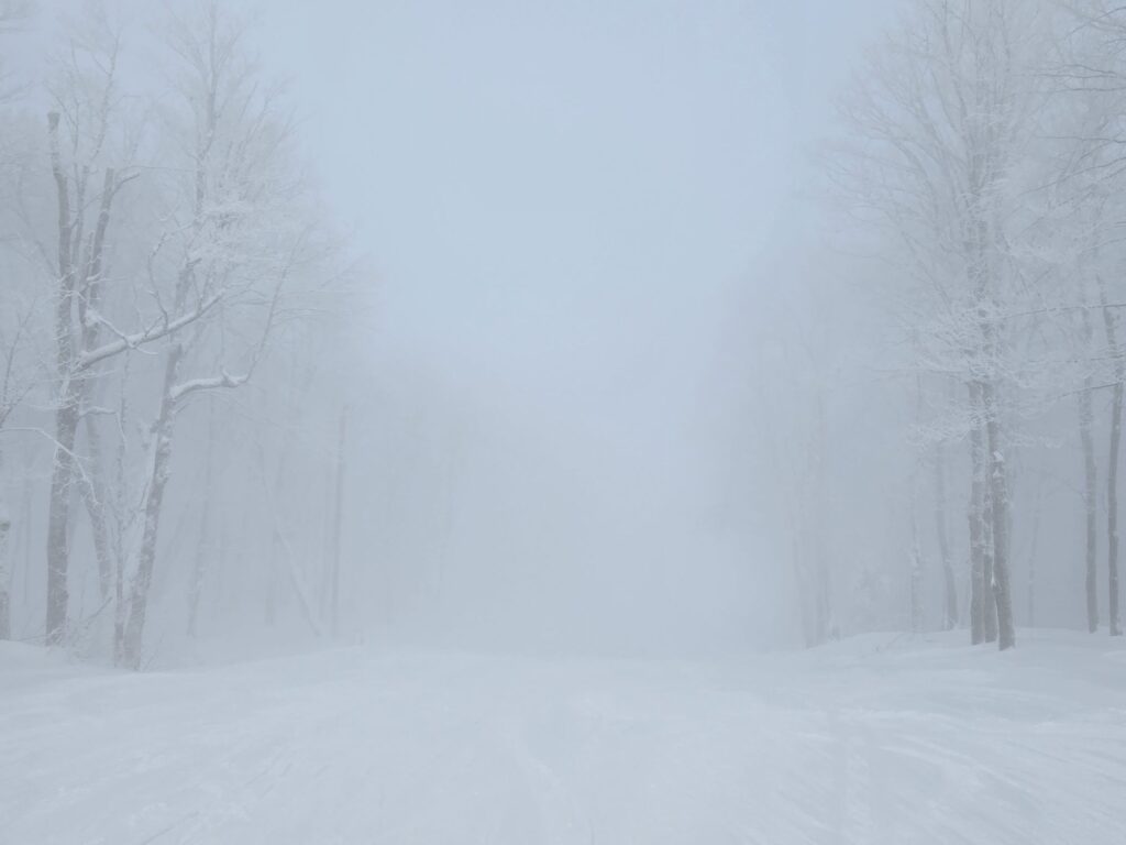 Ce qui provoque un brouillard très épais dans le haut des pistes au versant Blanc en début de journée, on y voit pratiquement rien. Celui-ci s’est dissipé au fur et à mesure que l’heure avançait…