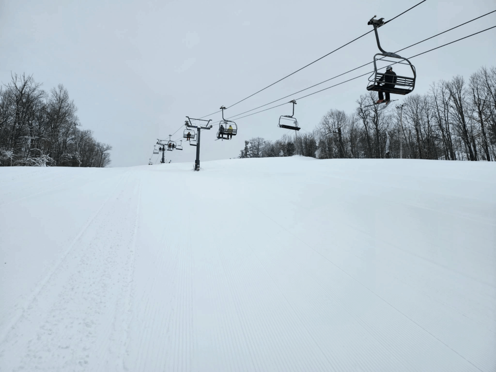 Seul bémol de la journée : une luminosité plutôt grise (flat light). Mis à part cela, ce fut une excellente journée de semaine sur les pentes, sans aucune attente au télésiège.