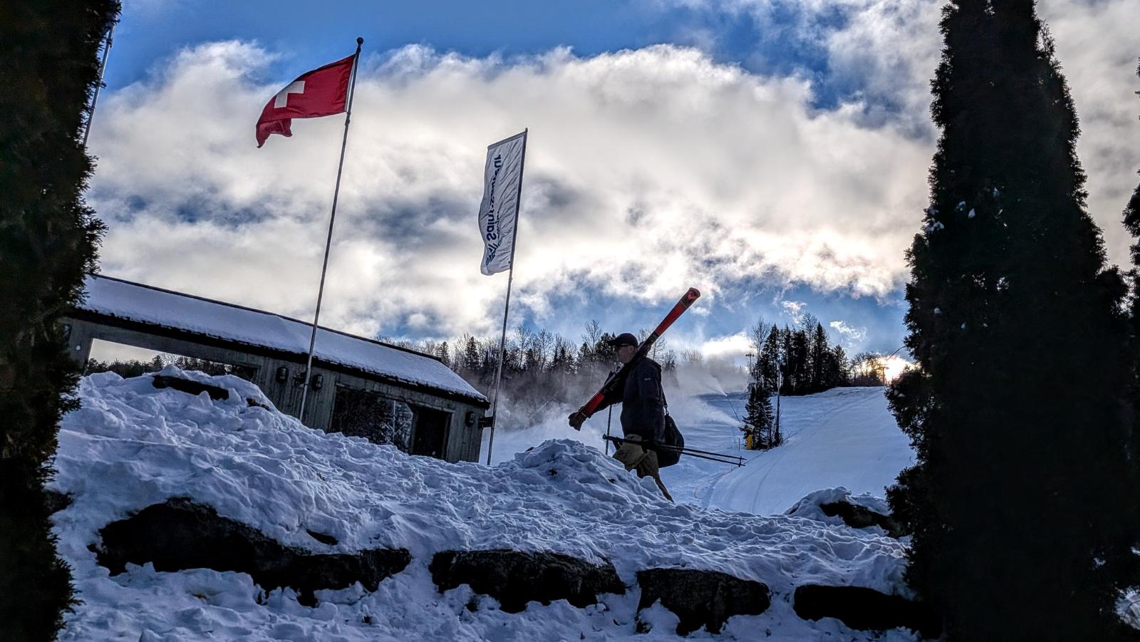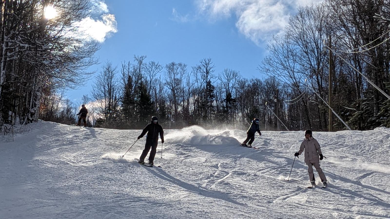 Sommet St-Sauveur, ouvert depuis une dizaine de jours déjà, ne manque pas de neige bien qu’il n’y ait qu’une seule piste ouverte. Ce matin, c’est l’hiver. Mais un hiver tout en douceur et en complicité: on donne à la piste tout ce qu’on a; en retour elle tient ses promesses.