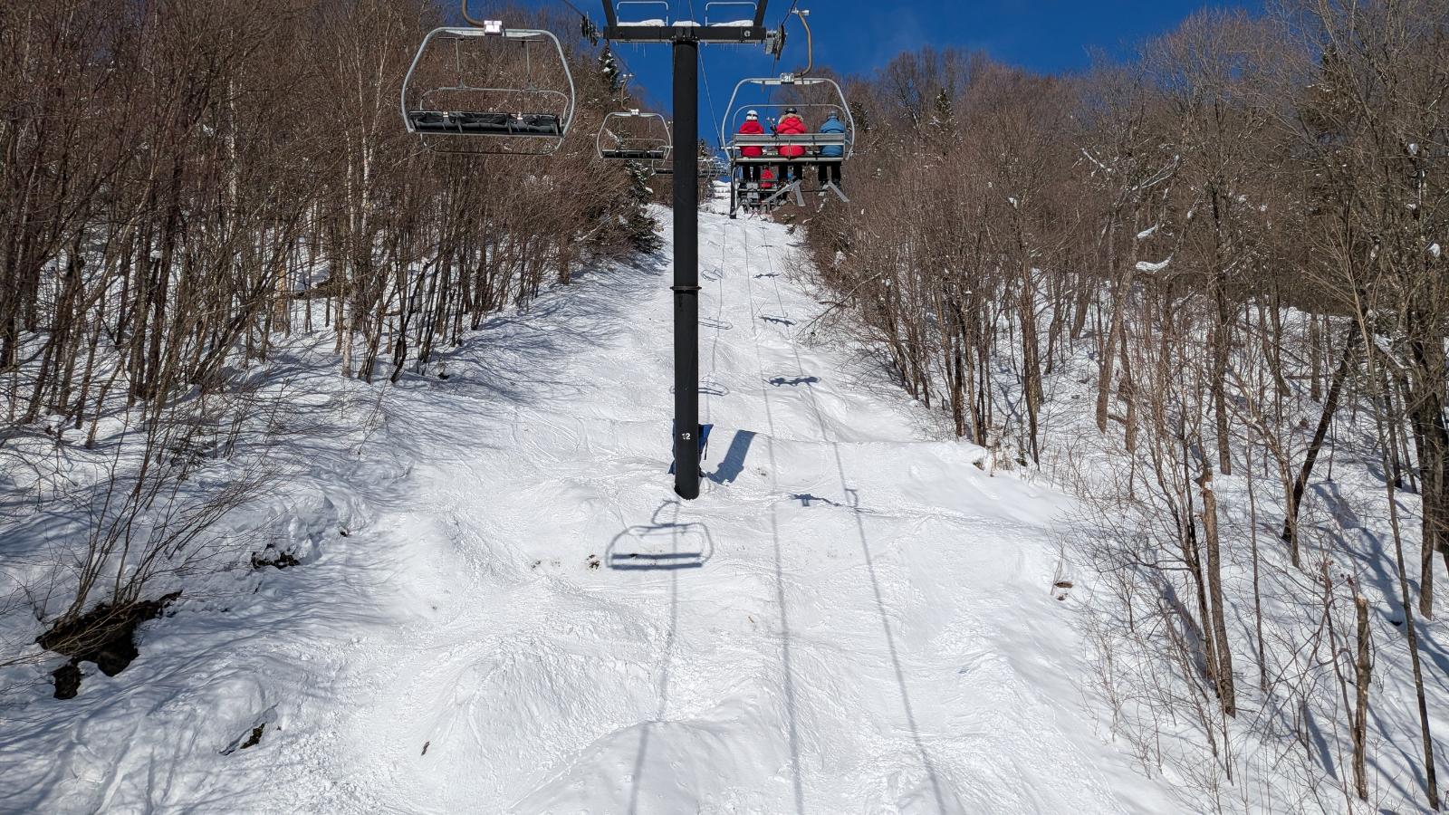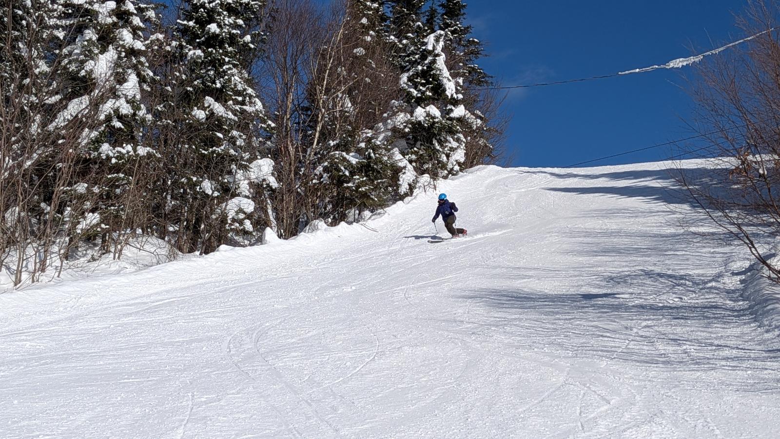 Oh, les conditions parfaites à Stoneham aujourd’hui! Il n’a suffit que d’une dizaine de centimètres de nouvelle neige pour faire de ma sortie un pur bonheur. Même en après-midi, même dans les pistes les plus pentues, même en télémark, la glisse demeure excellente du début à la fin. Ajoutez à cela une température avoisinant le point de congélation et un soleil pétant d’intensité… vous voyez ce que je veux dire. Parfaite, la sortie à Stoneham!