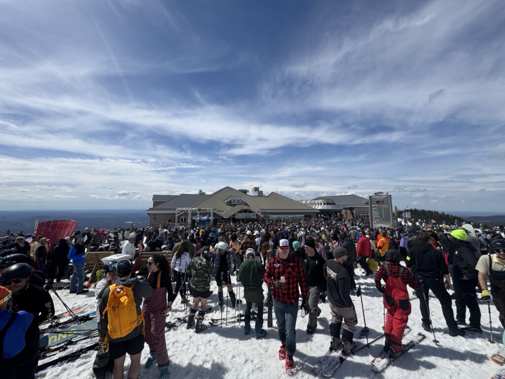 Le party de fin de saison se déroulait au sommet de la montagne avec une foule impressionnante, un DJ et de la bière qui coulait à flot.