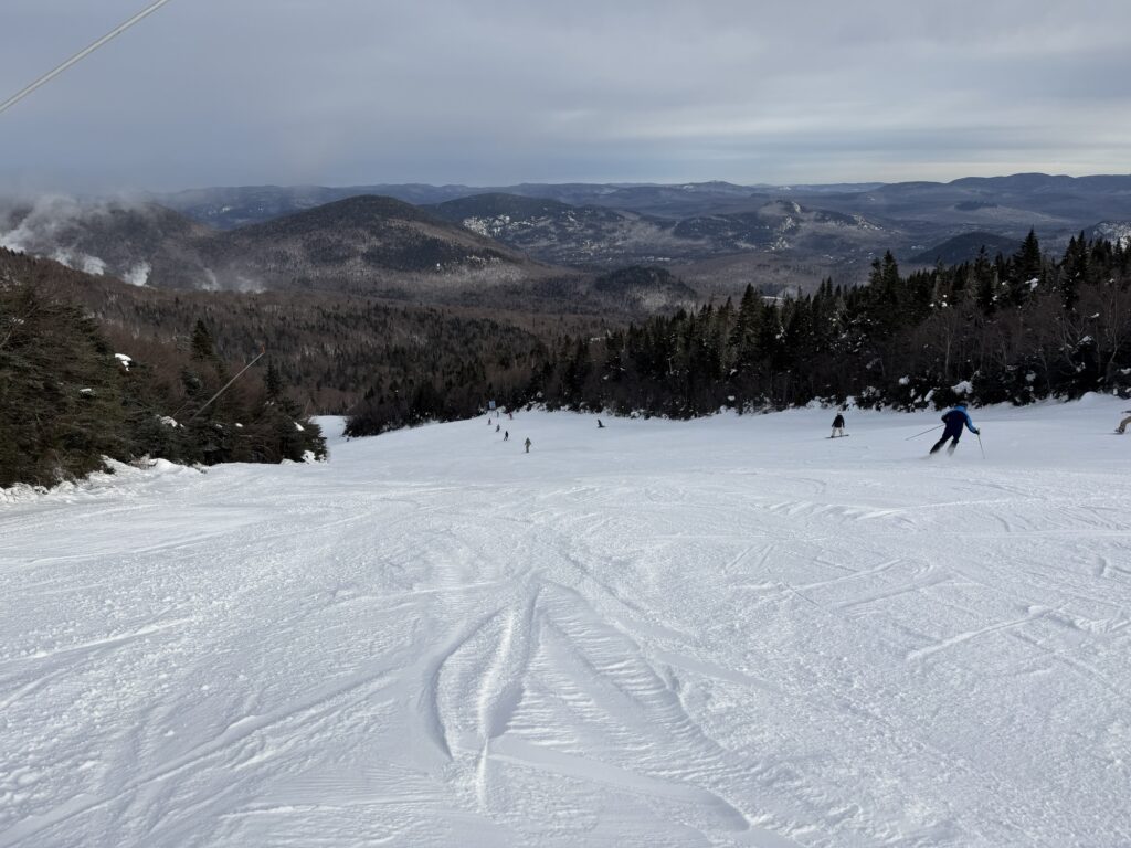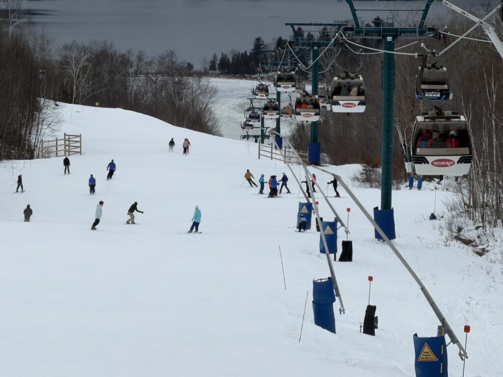 La station de Mont Tremblant nous livre un beau domaine skiable aujourd’hui avec 47 pistes ouvertes, un vent augmentant graduellement et un beau -12 ensoleillé. Bien évidemment, les pistes à bosses et les sous-bois ne sont pas accessibles en début de journée.