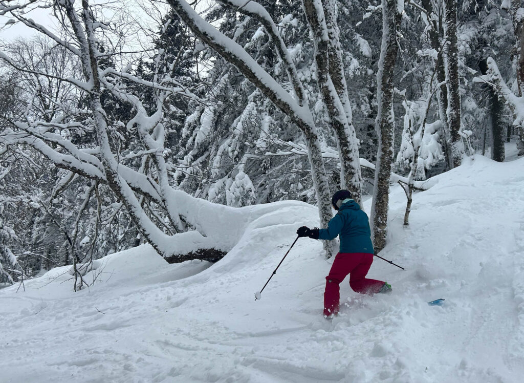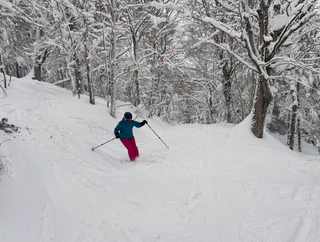 Les sous-bois du versant Edge étaient invitants grâce à la nouvelle neige de cette semaine. Nous les avons visités sans honte!