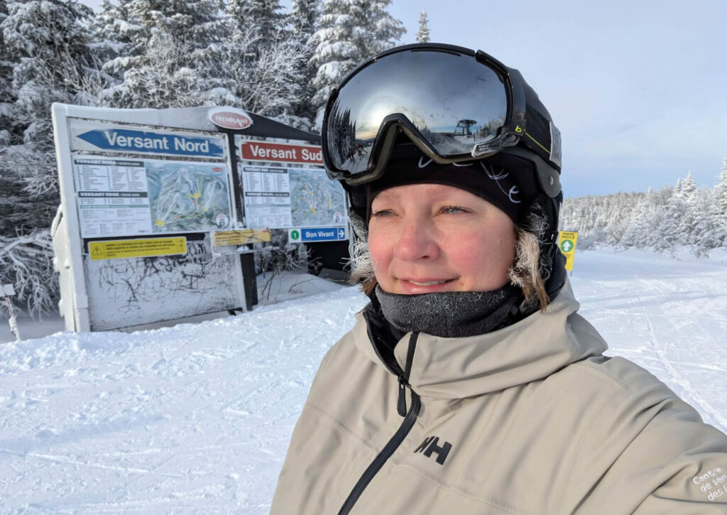 Il fallait être déterminé, courageux, et un peu cinglé pour aller en piste aujourd’hui! À notre arrivée à la base du Versant Nord, le thermomètre de la voiture indiquait -24°C. Les multiples pelures d’oignon et les gants chauffants ont été mis à l’épreuve durant nos descentes!