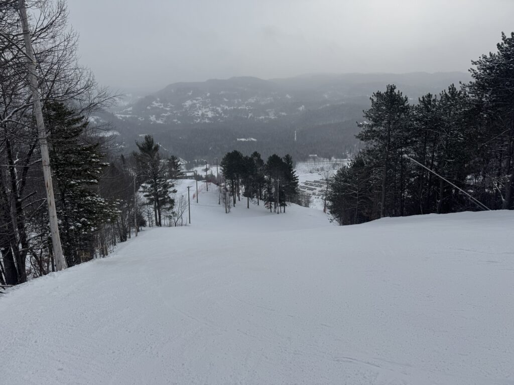 Val Saint-Côme offrait aujourd’hui 51 pistes réparties sur deux versants, incluant la vaste majorité du terrain sur neige naturelle, y compris certaines pistes extrêmes.