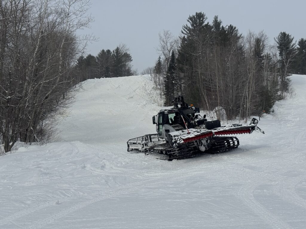 L’enneigement mécanique semble complété pour la saison et les pistes Point de Mire et Compétition ouvriront probablement demain, alors qu’une dameuse y était présente pour y niveler les tas de neige fabriquée.