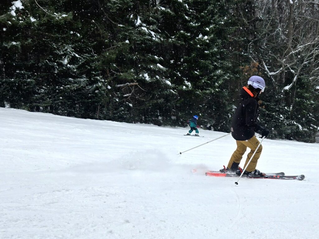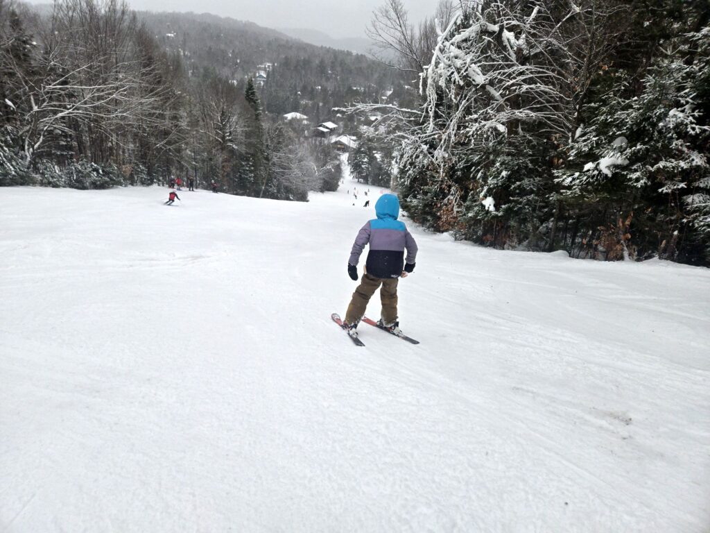 La piste école était par contre très occupée, la gratuité de celle-ci y était sûrement pour quelque chose. C’était beau de voir la relève s’adonner au ski et à la planche. Les rires réchauffaient l’ambiance.