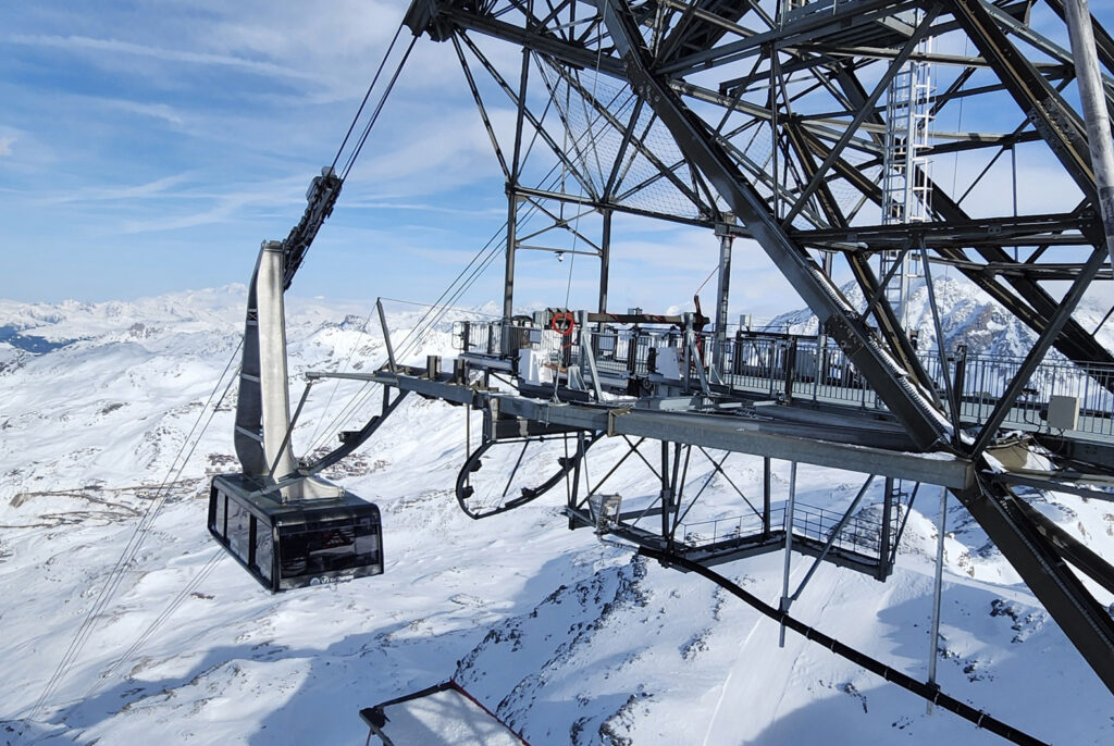 Arrivée du téléphérique de la Cime Caron au sommet, en provenance de Val Thorens.