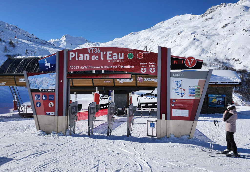 Le télésiège Plan de l’Eau, le point le moins élevé du secteur de Val Thorens.