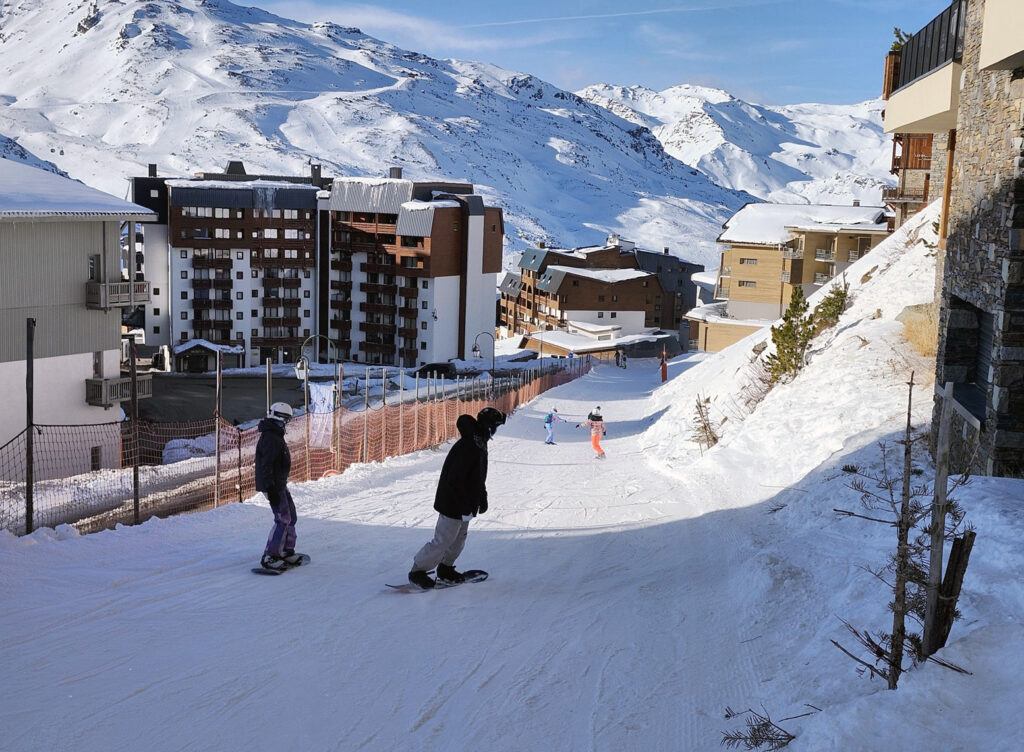 Descente vers le village de Val Thorens.