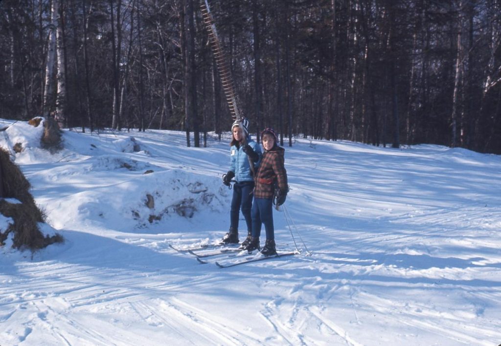 On peut voir sur la première photo la pente école et son téléski, puis 2 photos de Mme Boileau avec une de ses soeurs, et la dernière montre le casse-croûte et la boutique de ski.