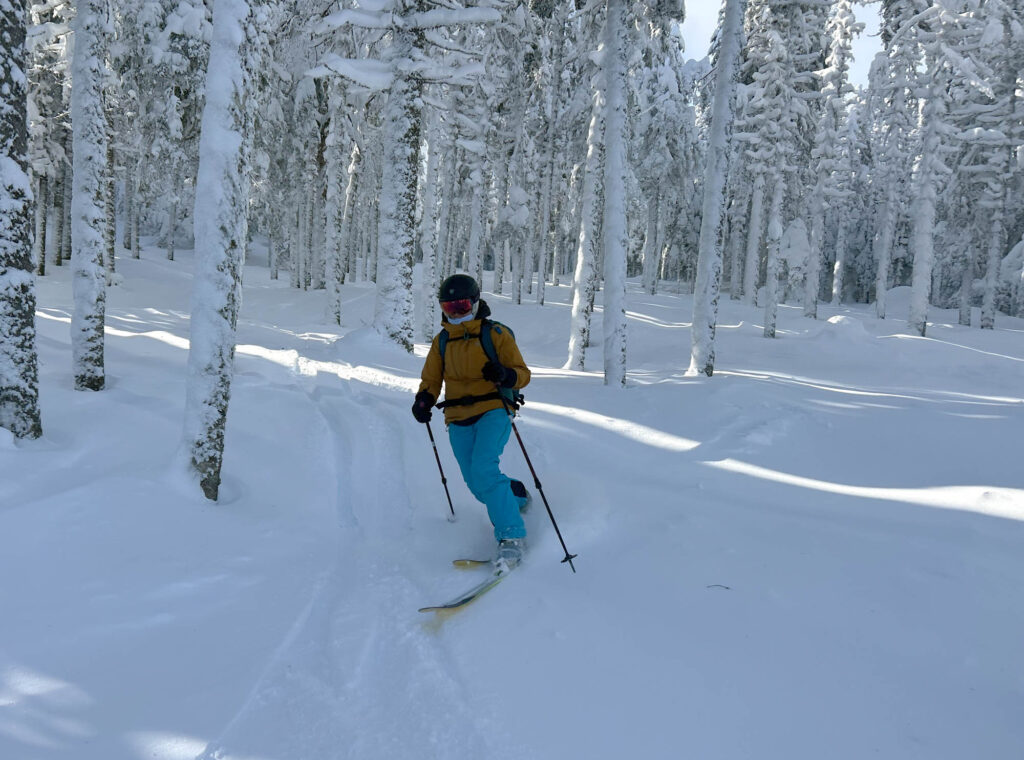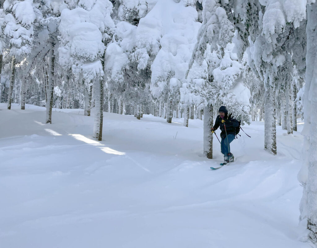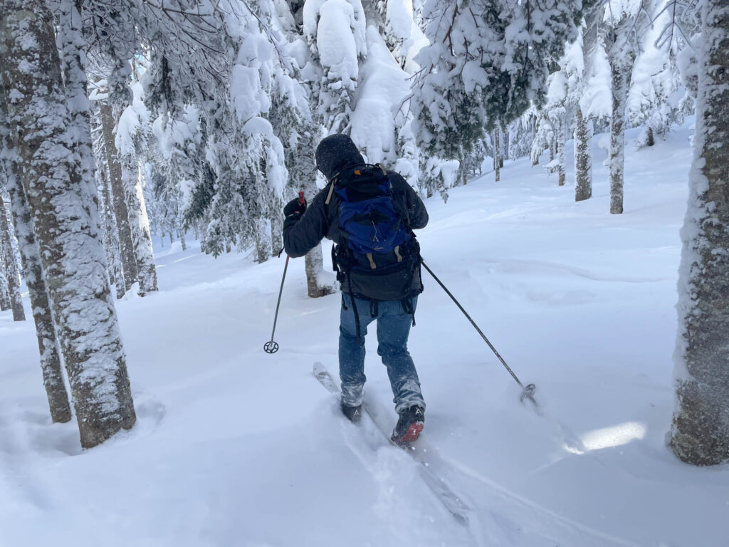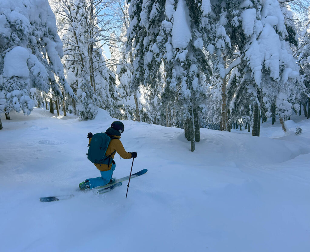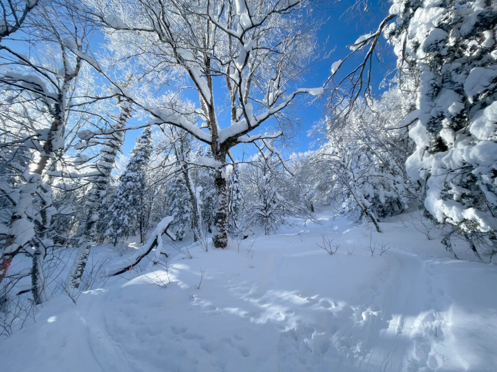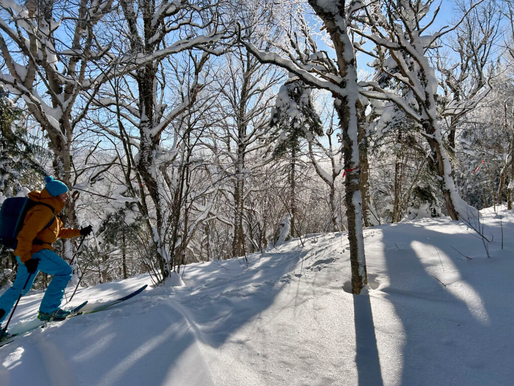 Lors de mon passage, il faisait un solide -18°C et les bourrasques de vent étaient bien présentes. Heureusement, l’ascension se fait dans des secteurs boisés, serrés et protégés, donc on est relativement à l’abri. Le paysage était féérique, la station est choyée par les chutes de neige cette année, ce qui donne des points de vue magnifiques et des conditions sublimes en descente. J’ai fait les sentiers A et C, et descendu un sous-bois (8) et une piste ouverte (10). Mon temps d’ascension a été assez similaire pour chaque sentier, entre 1h15 et 1h20. Chaque arrivée au refuge est accompagnée de fierté, de fatigue, et d’un soulagement de pouvoir se changer tranquillement dans un espace chauffé. C’était une belle demi-journée dans la montagne, parfaite pour oxygéner les neurones et profiter d’un moment zen.