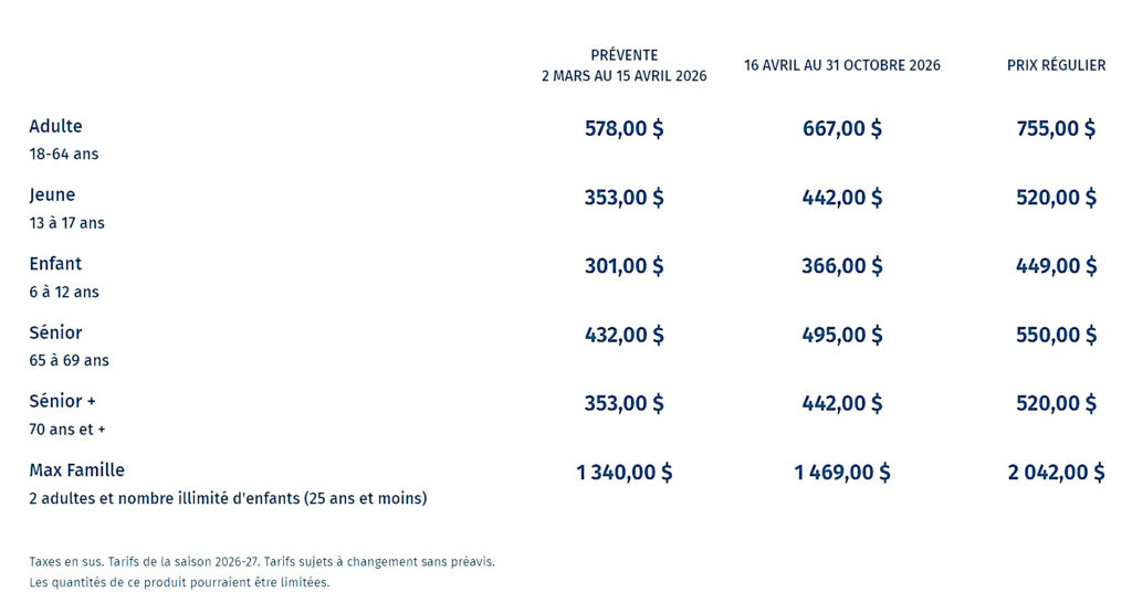 À partir du 2 mars, obtenez votre abonnement pour la prochaine saison au meilleur prix de l’année. Achetez-le dès maintenant et skiez pendant la relâche ainsi que tout le reste de la saison.