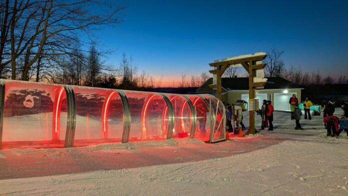 Nouveauté : une belle entrée invitante et carillonnante a été aménagée pour l’entrée de la piste Le sous-bois (1D), situé à gauche de la piste familiale!