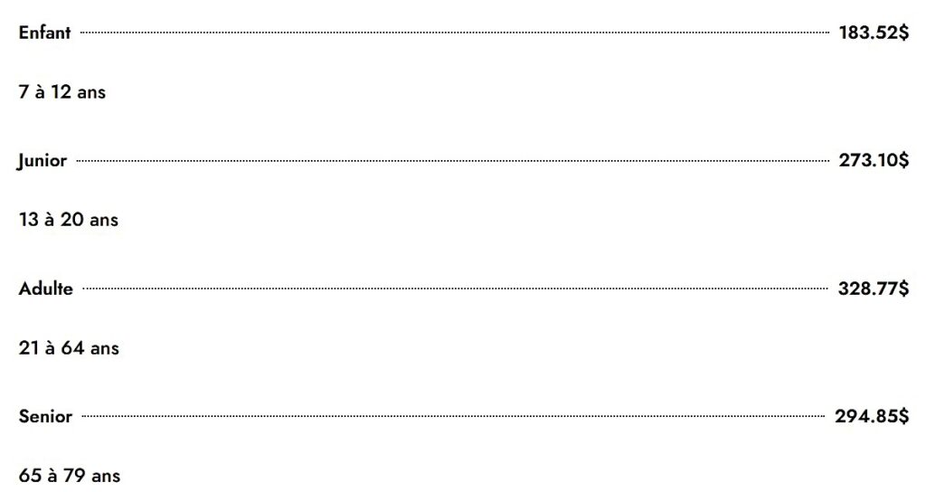 Plusieurs plans familiaux et autres catégories d’âge à découvrir en suivant le lien plus bas.
