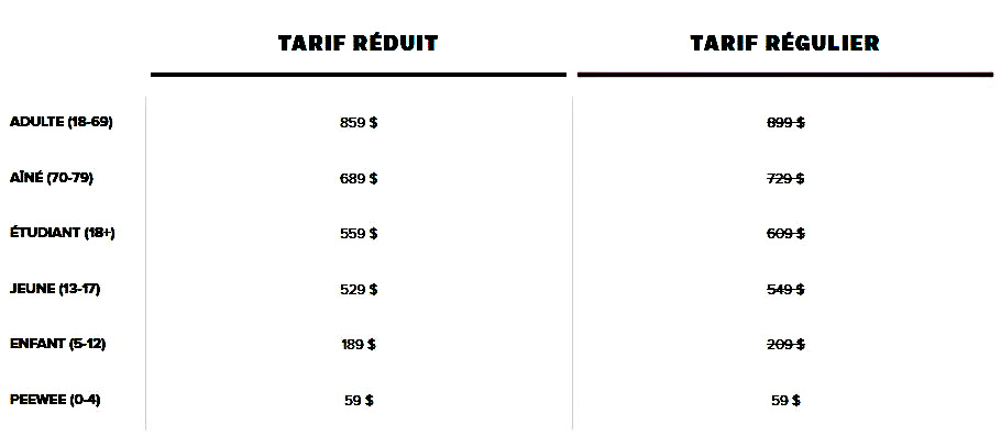 Destinée aux passionnés de 80 ans et plus, la passe Maître vous permet de profiter d’un accès illimité à la montagne toute la saison, sans aucune restriction. Pour obtenir cette passe de ski exclusive à 269 $, vous devez avoir 80 ans au moment de l’achat. Disponible uniquement en personne au Service à la clientèle.